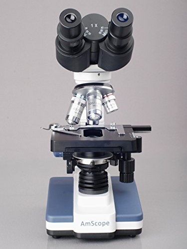 AmScope 40X-2500X LED Lab Binocular Compound Microscope with Double Layer Mechanical Stage + Book + 100 Coverslips & 50 Blank Slides