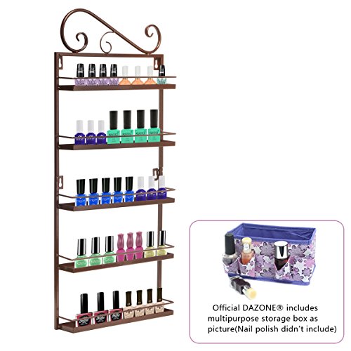 Dazone DIY Mounted 5 Shelf Nail Polish Wall Rack Organizer Holds 50 Bottles Nail Polish or Essential Oils(Bronze)