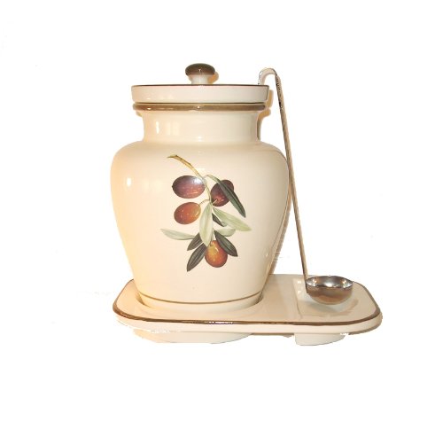 Pepper Mill Imports Creme Ceramic Olive Grape Themed Container, 1-Gallon