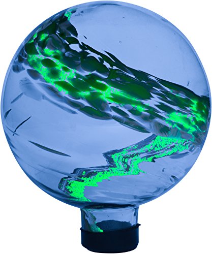 - Glass globe with luminescent crystals in the yellow swirl that absorb daylight and give off a gentle glow at night
