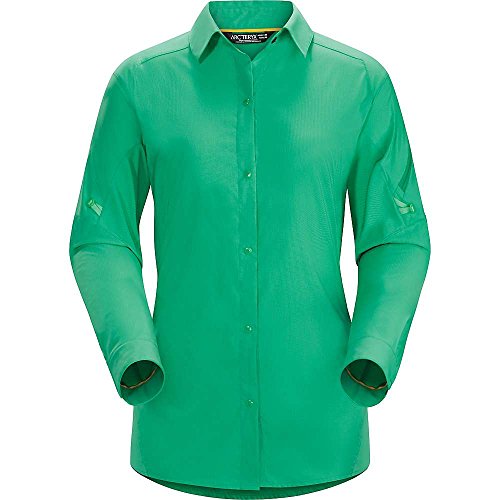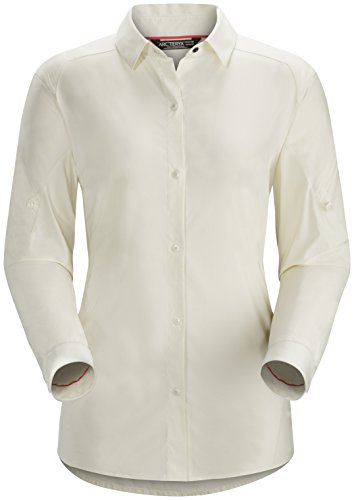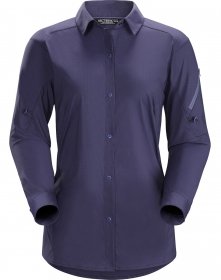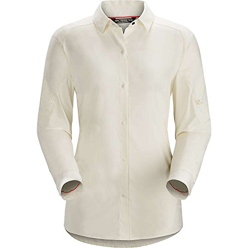 FEATURES of the Arcteryx Women's Fernie Long Sleeve Shirt Comfortable, durable, air permeable woven nylon shirting provides good mechanical stretch Long sleeve, snap front Zipper pocket on left shoulder is easily accessible Gusseted underarms for mobility and freedom of movement Sleeves can be rolled up and secured with button Provides sun protection (UPF 25)Feature