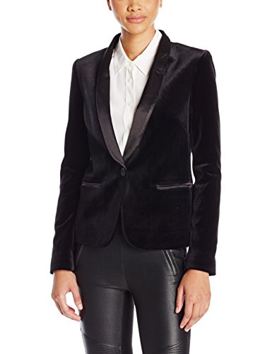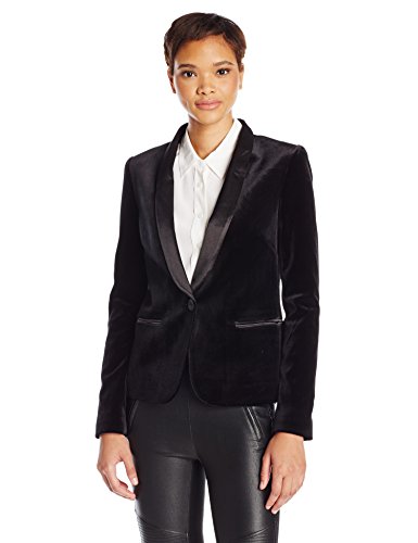James Jeans Women's Tuxedo Jacket with Satin Leather Lapels In Black Velvet
