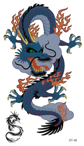 Supperb Temporary Tattoos - Blue Dragon on Fire