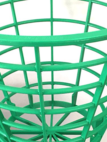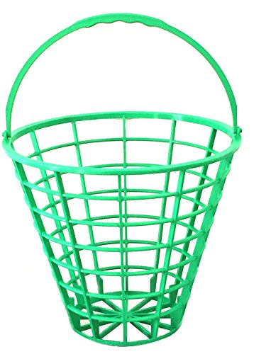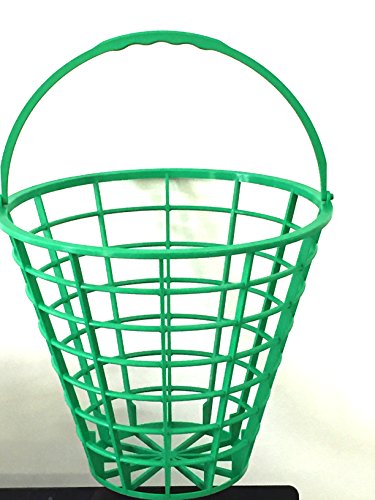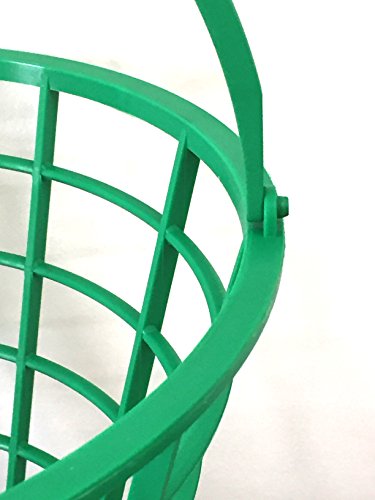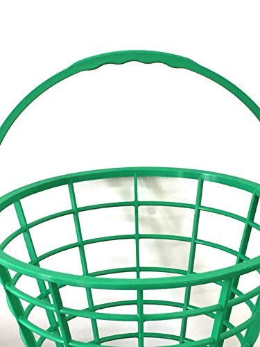-. Feature : Green plastic golf ball bucket with convenient handle / Plastic bucket will not rust or corrode / Holds up to 75 balls (not included) / Easy to stack for storage of multiple baskets