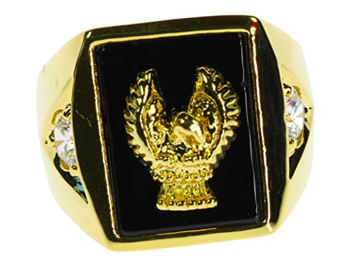 -. Title : Golden Eagle on Black Onyx 18K Gold Overlay Cz Accent Mens Ring