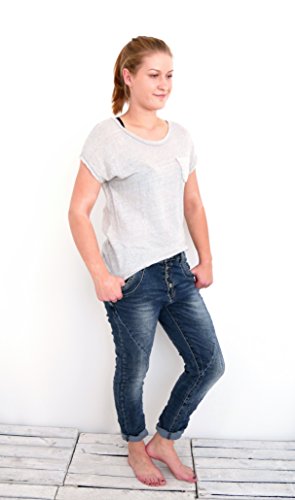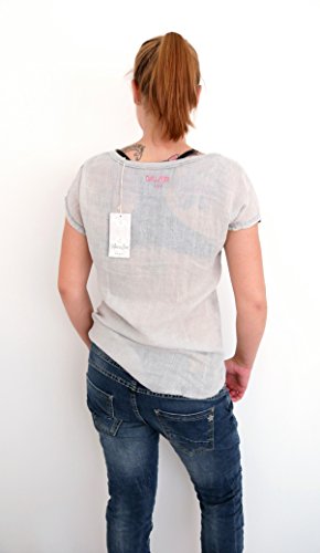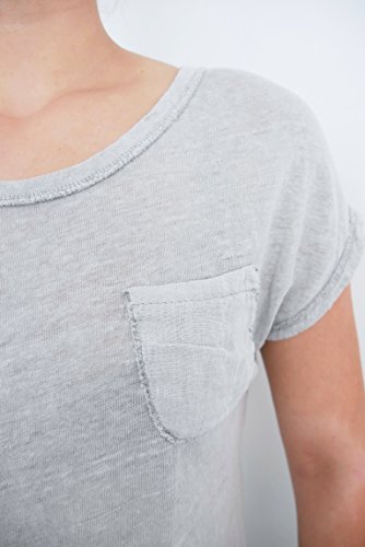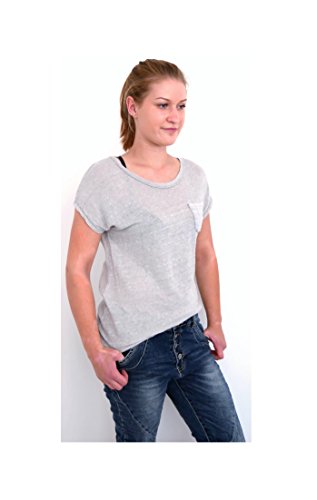 -. Title : ★ Fashion Trend Mode Shortsleeve Shirt Top Vintage Leinen dezente Glitzer Ziernähte in silber Brusttasche hellgrau light grey stein S M 36 38 40 usedlook (8261)
