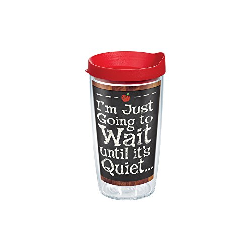 Tervis 1209823 Teacher Wait Until Quiet Wrap Tumbler with Red Lid, 16 oz, Clear