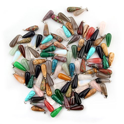 24pcs Oval Long Tears Water Drop Healing Chakra Charm Stone Beads Semi-Precious Gemstone Rock Crystal Quartz Stone Pendants for Necklace Jewelry Making