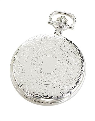 -. Feature : Chrome finish brass 47mm hunter case with a matching curb chain / Skeleton dial with roman numerals / 17 jewel mechanical movement / Deluxe gift box