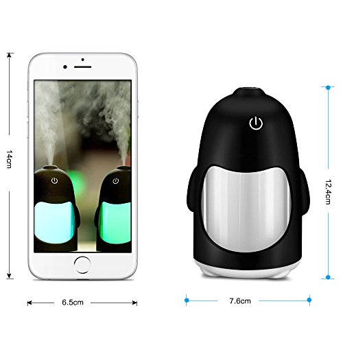 Winkeyes 150ml USB Penguin Creative Ultrasonic Cool Mist Humidifier Mini USB Air Humidifier with 7 Changing LED Night Lights Aroma Diffuser for Office Desk/ Bedroom/ Travel/ Car (White)