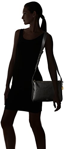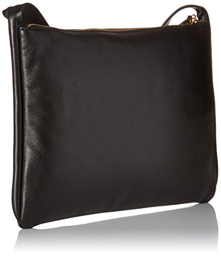 -. Feature : Minimalist leather bag with logoed fob and adjustable cross-body strap / Interior zipper compartment and two slip pockets