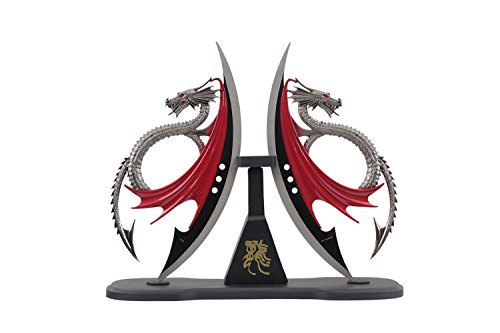 Wuu Jau H-548 Dual Fantasy Dragon Dagger Display with Wooden Stand, 11"