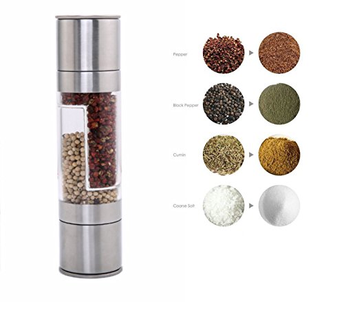 SAVING SPACE and CONVENIENT –2 in 1 design ,don't need to prepare two grinders for salt and pepper.Reduce clutter on your dinner table with this dual chambered design.