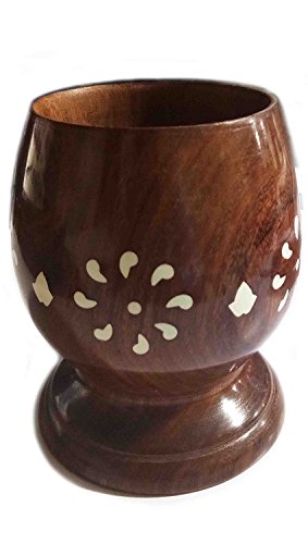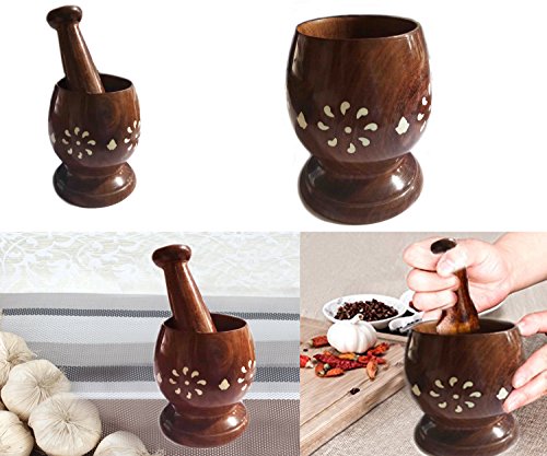 Xmas or Thanks Giving Day Present, 4.5 Inch Wooden Khalbatta White Inlay Mortar & Pestle Or Okhali Masher Or Mixer, Mortar & Pestle Wood Grinder for Spices, Seasonings and Pastes
