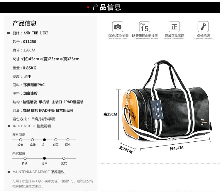 Material Composition:Men PU Leather Gym Bag