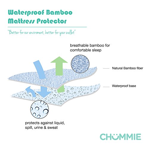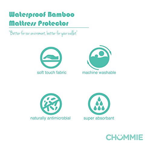 Enjoy the comfort and softness and protect your bedding safe from accidental urine leaks, perspiration and stains. Protects Against Accidental Urine, Sweat and Stains Notice urine or sweat stain on your bedding? Chummie Luxury Bamboo Rayon Waterproof Mattress Bed Pad Sheet Protector prevents your bedding from sweat and/or urine resulting from children or adult bedwetting accident or from perspiration. This user friendly waterproof protector can be simply placed over your fitted sheet for a relaxed and comfortable sleep. Absorbent Bamboo Rayon Fibers Bamboo rayon fibers are naturally more absorbent than most other fibers. This waterproof protector can hold up to 6 cups of urine, while maintaining breathability of the fabric, keeping you dry and comfortable all night. The upper layer is made of soft bamboo rayon fibers for a comfortable night's sleep. The base is made of 100% waterproof material which acts as a barrier to protect your mattress at night. Machine Washable You can wash this waterproof protector up to 300 times and it will still stay strong. It's easy on your wallet. 0 |