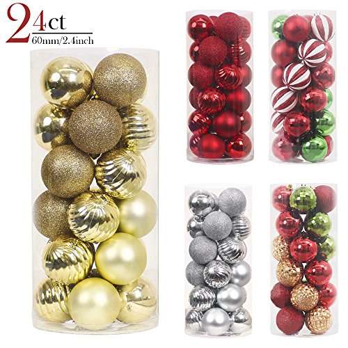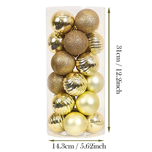 Valery Madelyn 24ct 60mm/2.36inch Essential Gold Shatterproof Christmas Ball Ornaments Decoration for Holiday Wedding Party Decoration, Tree Ball,24 Hook Included, Themed with Tree Skirt(Not Included)