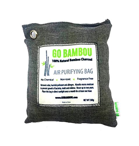 -. Feature : Go Bambou 100% Natural Bamboo Charcoal Air Purifying Bag - 500g / * The Go Bambou bag is filled with 100% natural bamboo charcoal which is the most effective natural air purifier that removes odor, harmful pollutant and allergen. It absorbs excess moisture to prevent growth of bacteria, mold and mildew. / * The Go Bambou bag works great for neutralizing unpleasant smells. / * The Go Bambou bag 500g covers up to 250 square feet. Ideal for bedrooms, kitchen, basement, living room and office. / * The Go Bambou bag can be reused up to two years. Placed the bag under the sun once a month for couple of hours to be revitalized.
