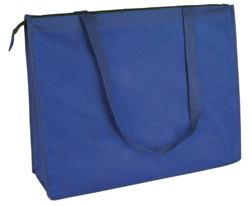 DALIX 20" Extra Large Reuseable Shopping Grocery Tote With Zipper In Navy Blue-2 PACK