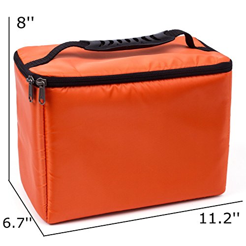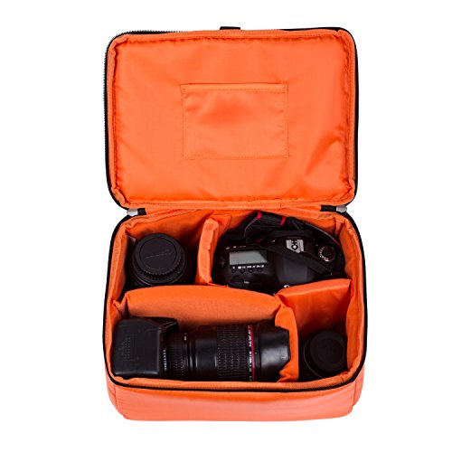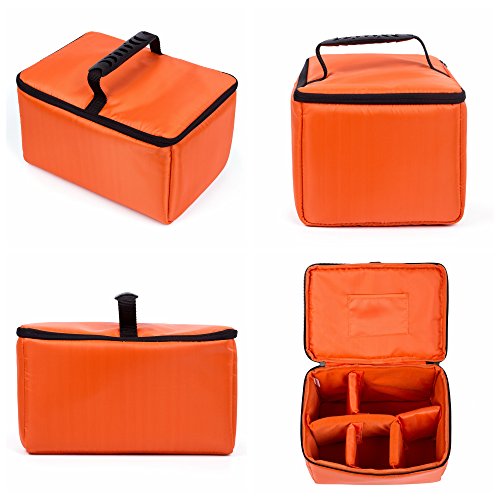 -. Brand : G-raphy -. Feature : Medium Size:11.2'' * 8'' *6.7'' Large Size : 11.8'' * 6.5'' *8.4 '' Capacity: DSLR/SLR camera and Two camera lens / This lightweight, sturdy inserts offer versatile storage compartments that allows you to fit your camera, accessories, and other personal belongings in one safe and convenient place! / Padded customizable dividers, and mesh compartments fits all your photography gear and includes space for smaller accessories. / Made of high density nylon, rain-proof, anti-wrinkle and anti-scratch. / Foldable, lightweight, and portable. Well-matching a backpack or shoulder bag -. IsAutographed : 0 -. IsMemorabilia : 0 -. Label : i-graphy -. Manufacturer : i-graphy -. MPN : 603526200826 -. PartNumber : 603526200826 -. ProductGroup : Sports -. ProductTypeName : OUTDOOR_RECREATION_PRODUCT -. Publisher : i-graphy -. Studio : i-graphy -. Title : G-raphy Camera Case Insert Interior Case for all DSLR SLR Cameras - Orange