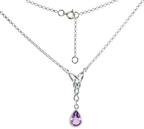 -. Title : Sterling Silver Celtic Tear Drop Necklace with Natural Amethyst, 16 inch long