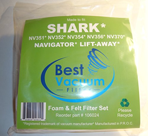 -. Feature : Designed to fit Shark NV350 Foam & Felt Filter Set / Filter Fits Shark Navigator Lift-Away models: NV350, NV350A, NV350E, NV350Q, NV350T, NV350W, NV350WC, NV350WM, NV351, NV352, NV355, NV356, NV357, NV360, NV370, NVLFT199, UV440 / Compare to Part # XFF350 / Washable and Reusable / Designed & Engineered by Best Vacuum Filter