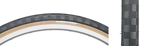 -. Feature : High volume; fast yet forgiving road tire / Supple and strong high thread count casing; Kevlar belt under tread for puncture resistance / Checkerboard tread; alternating smooth and diagonal tread squares