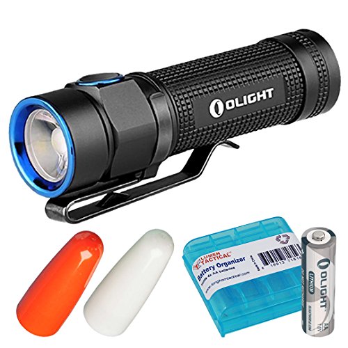 Olight S1A Baton 220 - 600 Lumens Single AA Compact EDC LED Flashlight with Lithium Iron AA battery, Traffic and Diffuser Wands plus LumenTac AA Battery Organizer