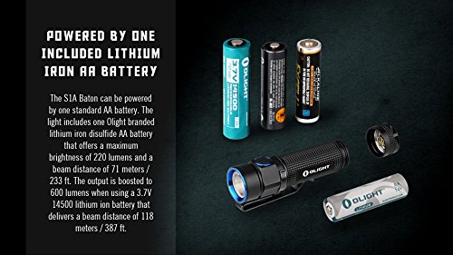 Brightest AA flashlight on the market - up 220 lumens with the included lithium iron battery and up to 600 lumens with a 14500 battery (sold separately)