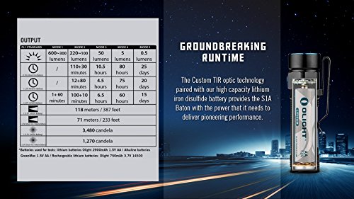 Incredibly long runtime with nearly 2 hours of power on high mode and up to 25 days in Moonlight mode using the included Lithium Iron AA Battery