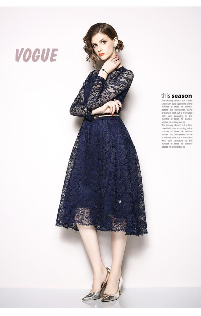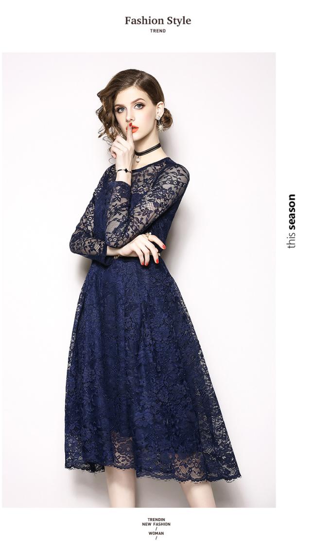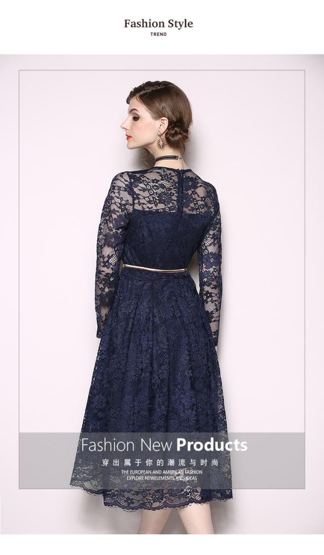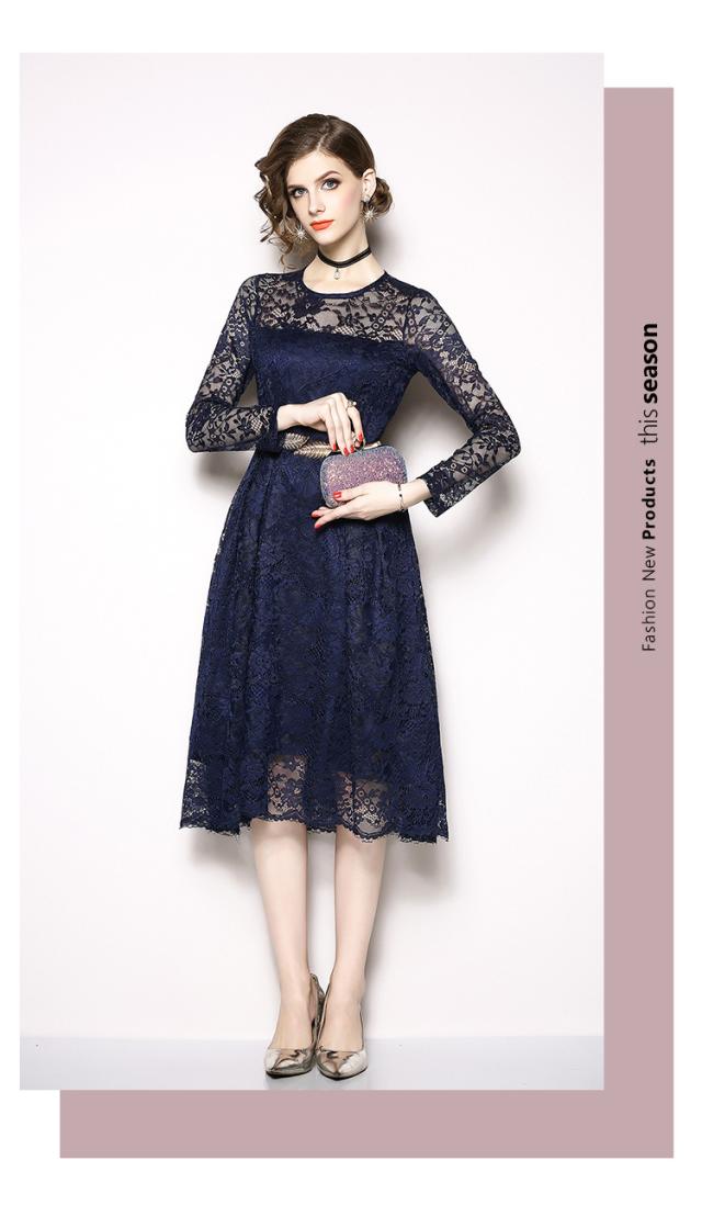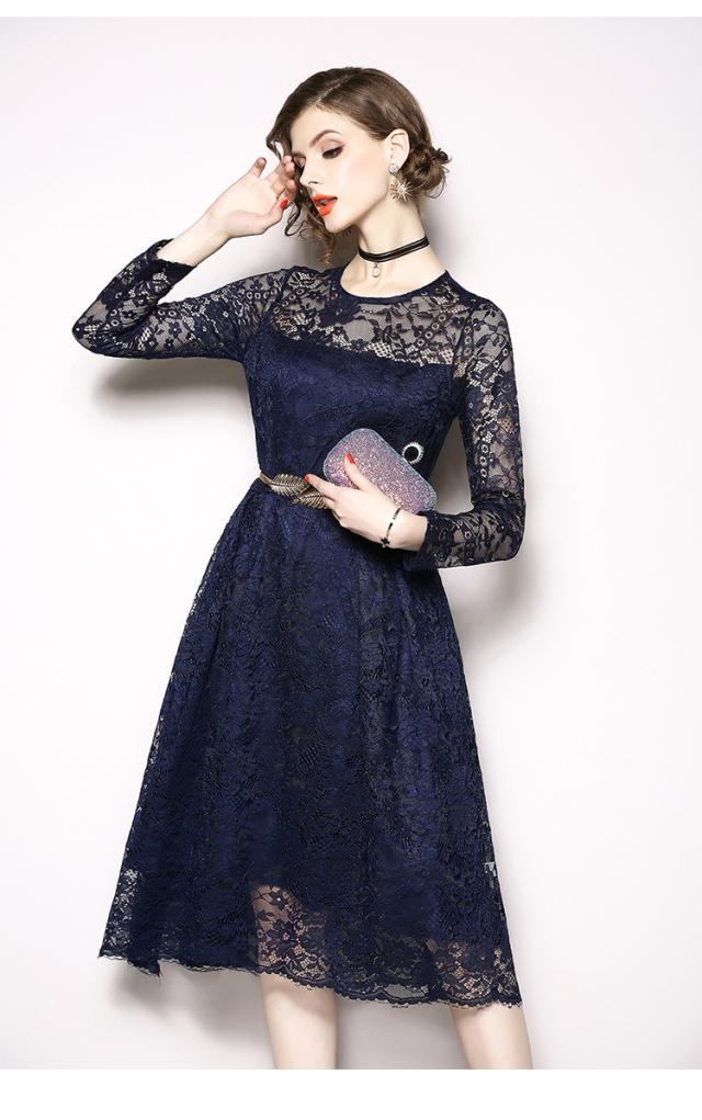 レース 刺繍 長袖 膝下 ベルト付き ワンピース ドレス 結婚式 二次会 披露宴 デート 女子会 パーティー ディナー 卒業式 謝恩会 コンサート 発表会 秋 春 冬 着痩せ 足長 ヨーロッパ風 L XL XXL XXXL