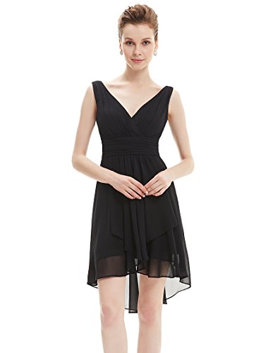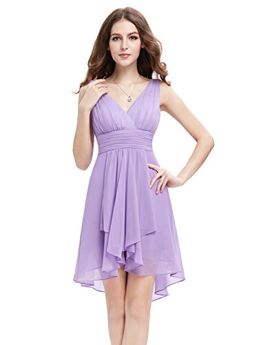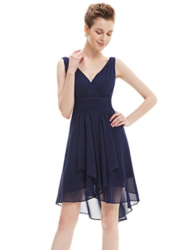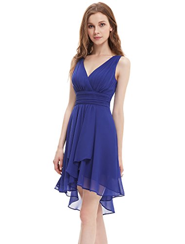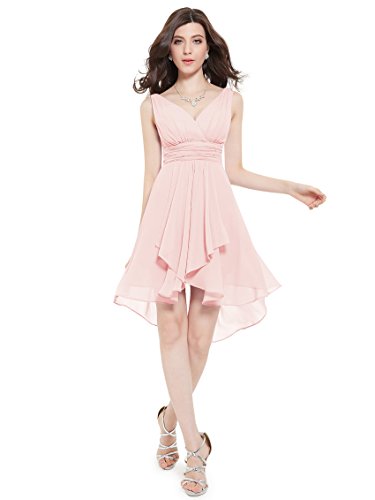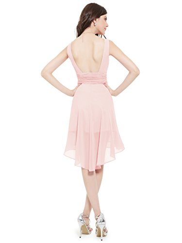 Sexy v-neck bridesmaid dress Padded enough for "no bra" option Unique high low at the hem The center back length(actually from the waist to the bottom, not measure from shoulder point)of size 8-14 are 3"-34",size 16-18 are 34"-35"Feature