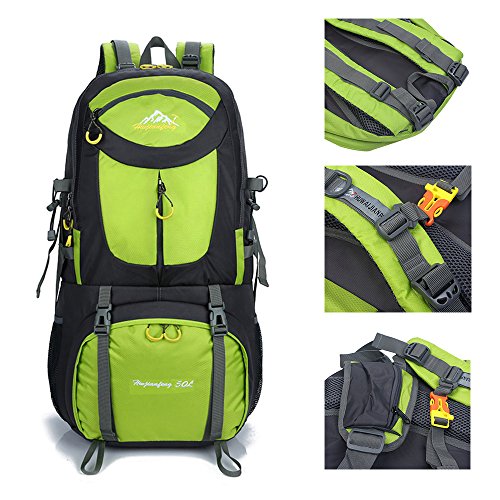 -. Brand : Gohyo -. Feature : MULTIFUNCTION 50L HIKING BACKPACK--With a capacity of 50 liters(3,000 cubic inches);14pockets--large front pocket, bidirectional zippered side pockets, and multiple elastic bands for powerful storage (including space for hats);Prefect for hiking, traveling, camping,climbing , shopping and school,suit for both men & women. / A RAIN COVER INCLUDED--The travel backpack with a orange rain cover;light, comfortable, and adjustable chest and waist belts; ergonomic padded shoulder straps and back support for the best air ventilation and easing. / DURABLE & COMFORTABLE--Made of lightweight durable materials.Padded adjustable shoulder straps and mesh ventilation promise an enjoyable carry. / 50L WATER-RESISTANT BACKPACK--Rip-stop polyester to prevent the water from sipping into the bag; If the heavy rain comes, then rain cover can works. / NO RISK PURCHASING--3 years 100% satisfaction warranty guaranteed & easy-to-reach customer service. -. Label : Gohyo -. Manufacturer : Gohyo -. MPN : DSLXB504 -. PartNumber : DSLXB504 -. ProductGroup : Sports -. ProductTypeName : OUTDOOR_RECREATION_PRODUCT -. Publisher : Gohyo -. Studio : Gohyo -. Title : Hiking Backpack 50L Waterproof Camping Backpack Daypacks Outdoor Sport Backpack with a Rain Cover for Climbing Shopping Fishing Travel Cycling