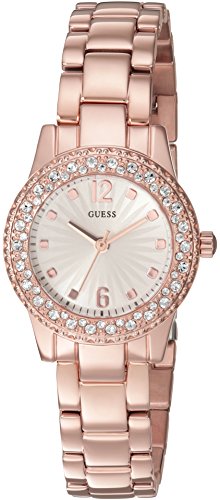 -. Binding : Watch -. Brand : GUESS -. Color : Rose Gold -. Department : womens -. EAN : 0091661465963 -. Feature : Crystal details surround soft metal dials in this petite Rose Gold-tone silhouette / The perfect accessory for any occasion / Quartz Movement / Case Diameter: 29.5mm / Water resistant to 30m (100ft): in general, withstands splashes or brief immersion in water, but not suitable for swimming or bathing -. Label : Sequel International -. Manufacturer : Sequel International -. Model : U0889L3 -. MPN : U0889L3 -. NumberOfItems : 1 -. PartNumber : U0889L3 -. ProductGroup : Watch -. ProductTypeName : WATCH -. Publisher : Sequel International -. Size : NS -. Studio : Sequel International -. Title : GUESS Women's U0889L3 Petite Rose Gold-Tone Watch with Silver Dial , Crystal-Accented Bezel and Stainless Steel Pilot Buckle -. UPC : 091661465963