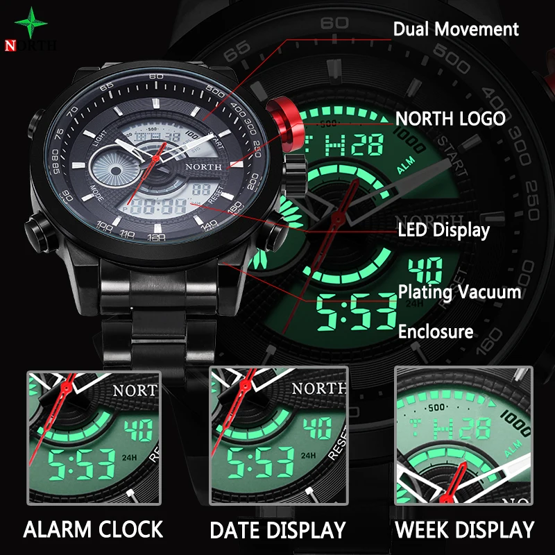 Quartz Wristwatch Men:LED Digital Wristwatch