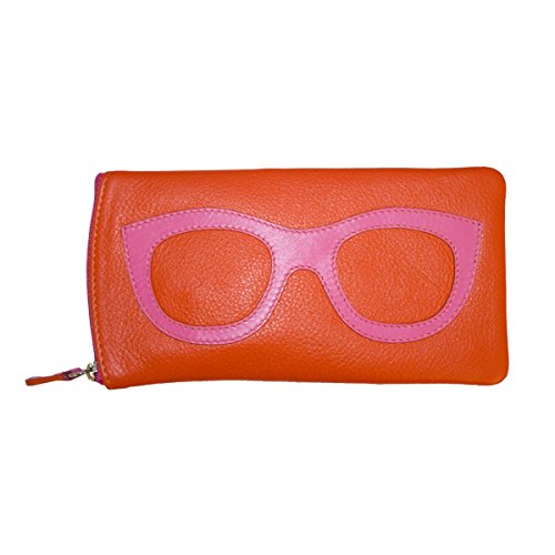 (ILI)/Accessories/Wallets, Money Key Organizers/DIRECT FROM USA/ILI 6462 Leather Eyeglass Case (Orange/Fuchsia)