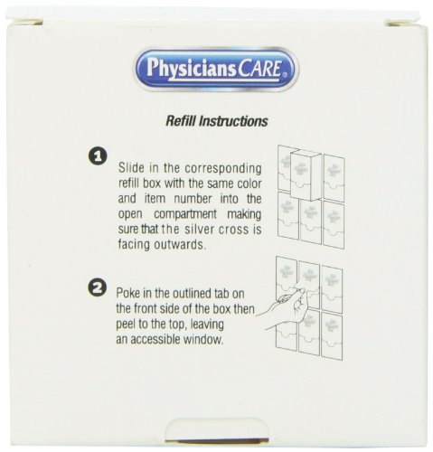 ReleaseDate : 2015-06-22 Studio : Physicianscare Publisher : Physicianscare Binding : Health and Beauty Product Description The xpress first aid easy reordering system makes it effortless to keep your kit in stock and up to date. Each of the essential first aid supplies utilizes our innovative reorder card system to remind you to order when supplies are low. Refill boxes contain just the right amount of each first aid component. 1/2 inches x 1/2 inches plastic patch bandages. 10 sterile bandages with non-stick pad. 100% latex free. Packaged for individual use. 0