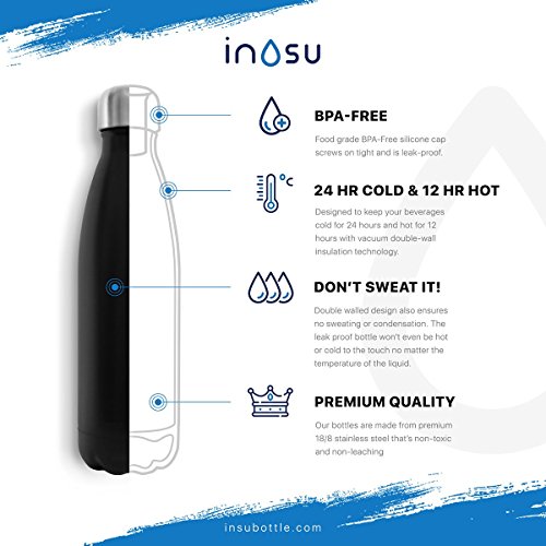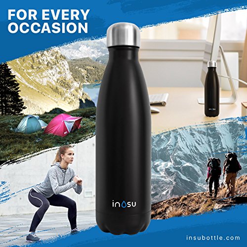 DON'T SWEAT IT - Double walled design also ensures no sweating or condensation. Don't worry about getting water on your desk, rings on your table, or a mess in your bag! The leak proof bottle won't even be hot or cold to the touch no matter the temperature of the liquid. PERFECT SIZE: 17 oz (500 ml) capacity is perfectly sized to keep you hydrated all day long and it fits most cupholders. It's and ideal drinking bottle on the go.