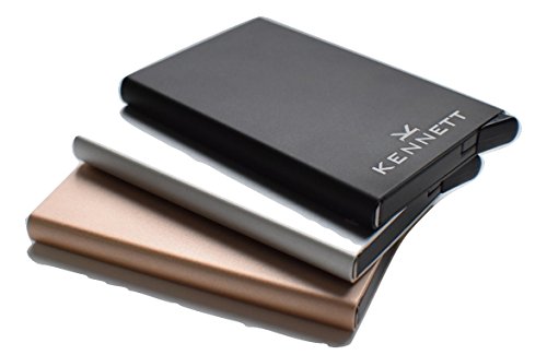 -. Feature : Perfect and stylish RFID blocking credit card wallet. Silver IP Plated Body; lightweight and secure; very stylish RFID card wallet protector. This card secure card holder is a perfect RFID wallet for women or men. Made of aluminum. Holds up to 6 credit cards which are released as a stack at a push of a button / Protect Your Identity Data - Block RFID Readers from Scanning Your data. Shields the following types of cards: All new contactless credit cards, Enhanced Driver's Licenses,Many transit cards, TWICTM, HID iClass, HID MIFARE®, HID FlexSmart, DESFire, Indala FlexSmart, Any card ISO 14443A/B or ISO 15693 compatible, All MIFARE® and DESFire compatible cards, sQuid cards, Military CAC, New Government PIV cards, New long range RFID EPC Gen1/Gen2 cards / This stylish credit card wallet RFID protector is water resistant and puncture and tear resistant. Because it also comes in a Beautiful Kennett premium packaging, this is a perfect RFID wallet gift for men or women / Created by famous British designer Tom Kennett, this RFID wallet is lightweight; easy to carry in your pocket or purse; protects your card from physical damage. This rfid blocking credit card wallet is small enough to keep hidden in your front pocket or purse, offering you the perfect solution / Great as a gift. Buy now with confidence - we accept returns