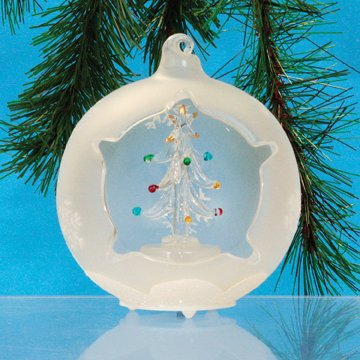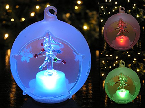- LED Glass Ball Ornament with Tree Figurine with little colored ornaments.
