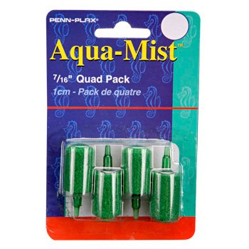The Aqua-Mist Air Stone Cylinder is a fine mist aerator that alows more oxygen in the tank and enables your fish to breath better. It comes in a 4 pack and each Air Stone measures 7/16".Feature