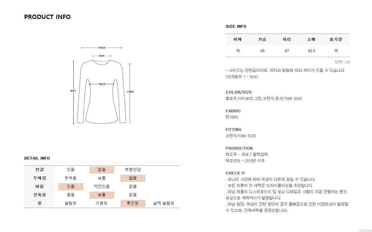 *모든 의류의 첫세탁은 드라이크리닝을 권장해드립니다*