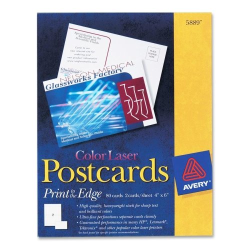 -. Title : Avery Color Laser P.R.Int-to-the-Edge Postcards - 4" x 6" - 80 / Box - White