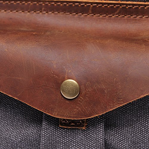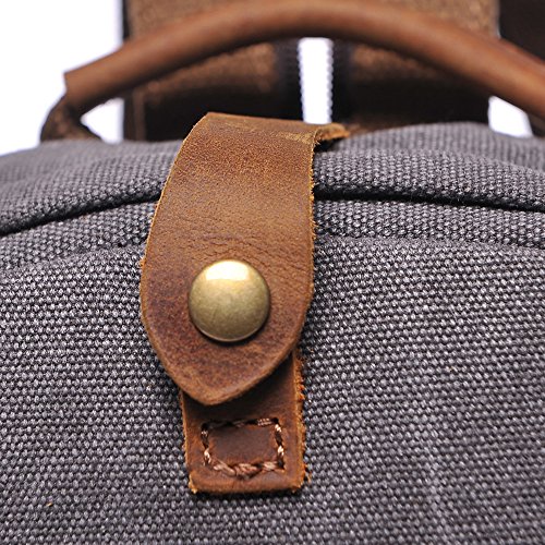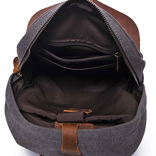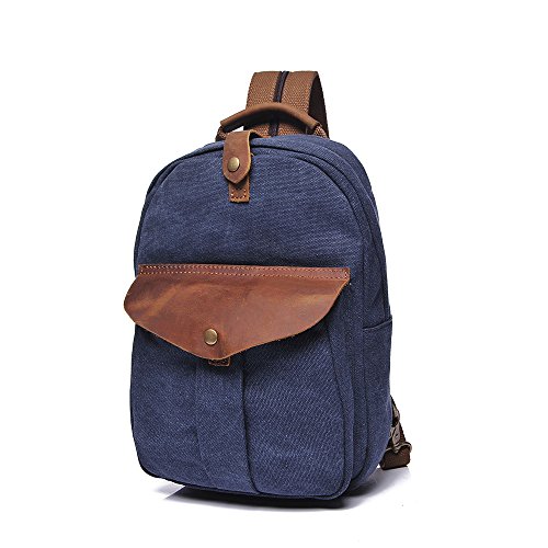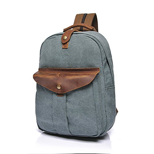 -. Feature : Material: this fashion vintage backpack is made of water canvas and head layer cowhide. / Approx Dimensions: 20 x 30 x 7cm Weight: o.5kg / Structure: A total of 4 pockets, 1 zipper pocket, 1 laptop sleeve, 1 interior pocket, 1 front pocket, large enough to hold almost all your daily necessities such as books, clothes, cosmetic bags, sunglasses, keys, cards and so on / Comfortable Wear: this incredible backpack is very convenient to carry, it has a zipper on the strap, so you can choose to carry it on back or chest / Fashion & Vintage: solid color with leather trim form a special visual effect, bronze metal adds to its fashion, casual and vintage personality