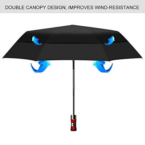-. Title : HODGSON Umbrella,Winproof Canopy,Auto open & Close Folding Black Rain Umbrella for Men and Women-Wood