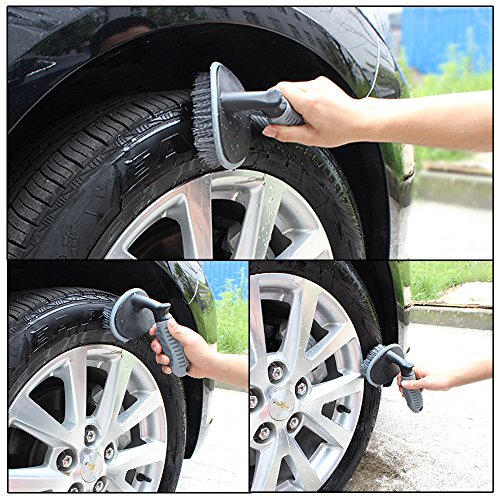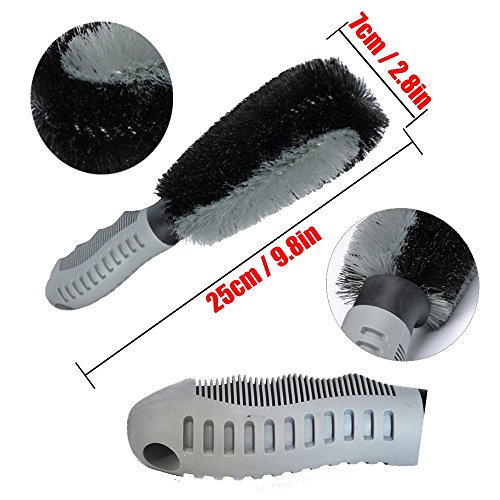 -. Feature : High-end steel wire flocking technology, brushing bristles with dense, regular, strong cleaning and durable. The handle made of PVC soft rubber, the grip feels comfortable, healthy environment protection and adopt of unique ergonomic design, with anti-skid function. / Can hang it when not in use, hang in some corner or in wall, does not take up space at all and easy to carry as well as receive. / The rotary brush and car wheel brush combined use, help you easy to clean blind angle or hard to reach places show you sparkling brand new feeling every time. / The soft, sturdy bristles are designed to remove mud and road grime the wheels. Suitable for all kinds of vehicle wheel tire,also clean the ground, car floor, pedal, household ceramic tile seam, etc. Long-term strle all kinds of cleaning and maintenance for your. / The car wash mitt is 3 layers with a waterproof lining to keep your hands clean and dry. Cleaning cloth can be used indoors and outdoors, good elasticity, wet or dry. Dries quickly, perfect for car and household cleaning.