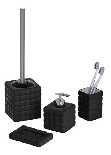 Product Description The high quality bathroom series Cube sets classical design accents in the bathroom. The accessories are made of ceramic with an elegant Soft-Touch coating and an unusual cube pattern. The toilet is cleaned thoroughly by using the black toilet brush Cube. Due to its durable and adaptable bristles, the brush guarantees reliable usage. The brush holder keeps the brush within easy reach in a decorative manner. The set includes a toilet brush with a replaceable black brush head with a diameter of 7.5 cm. 0