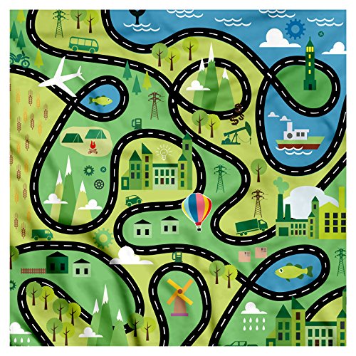(Ambesonne)/Accessories/Cold Weather Accessories/DIRECT FROM USA/Boy's Bandana by Ambesonne, Aerial View of Coastal Suburbs with Roads Cartoon Style Hot Air Bal...