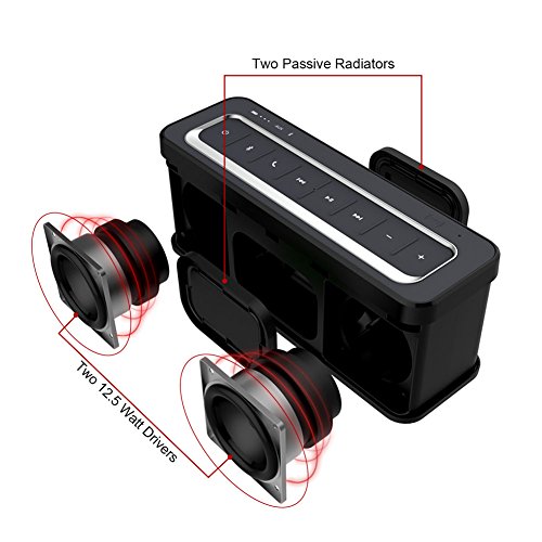 Rich Bass and Clear Sound: 25W Output from Dual 12.5W Drivers.The bluetooth speaker features advanced DSP chips for adjusting EQ mode automatically according to different music style.Surround stereo sound easily fill a big room, and no distortion.