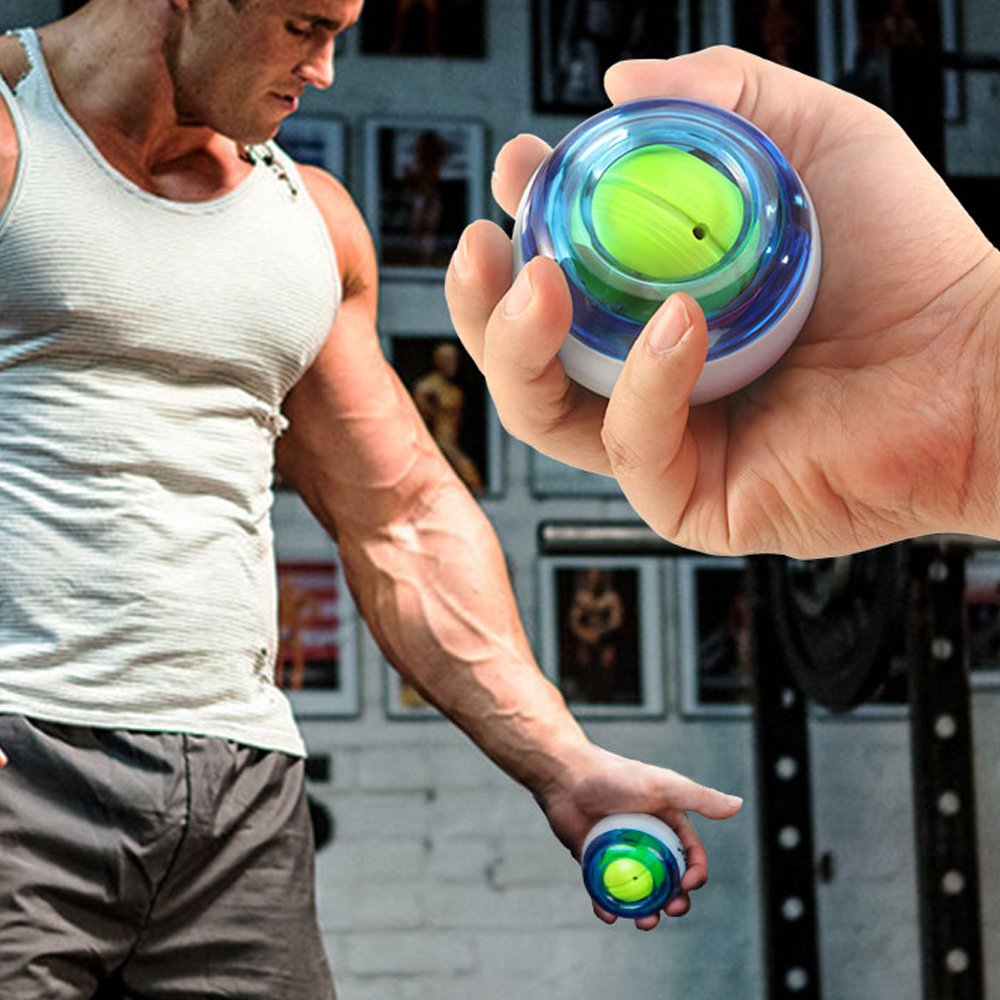 The wrist ball performs the strength training of the finger, wrist, forearm etc. by the centrifugal force of the rotation of the ball.